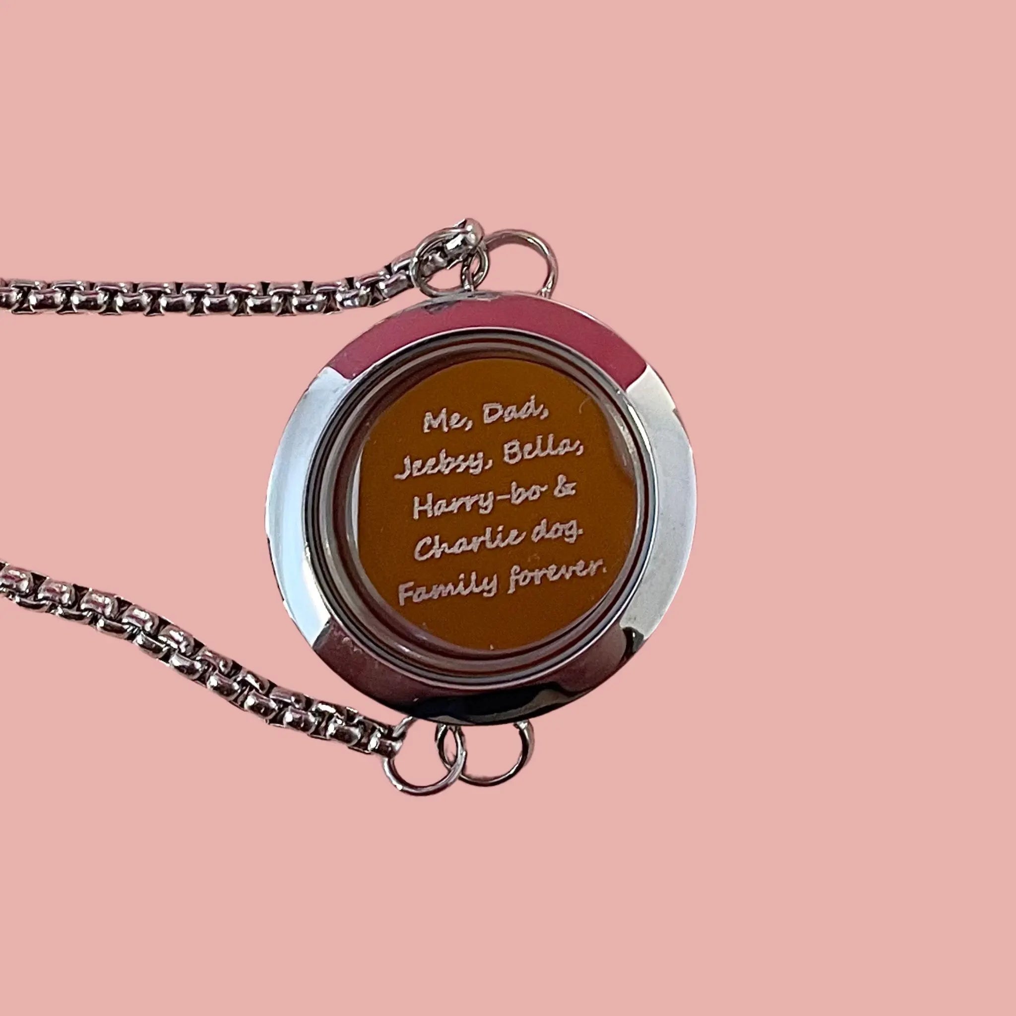Personalise your locket with an optional engraved back plate to create a background to your charms - or you can insert the back plate face down and the engraved message will be visible when you turn over the locket.